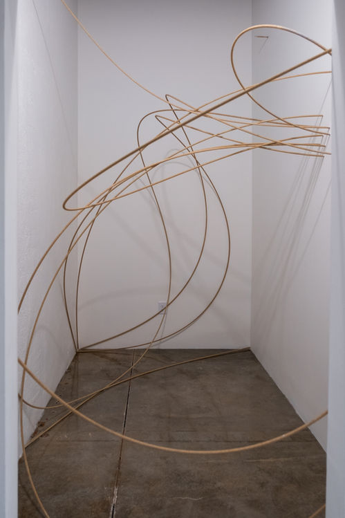 "We are so grateful to have had Margaret Pope as our Spring/Summer Visiting Artist at The Common Well. Her residency was made possible through a generous gift from J.A. and Kathryn Albertson Family Foundation and allowed Pope to work freely in a private studio at The Common Well experimenting, exploring and creating new installations and sculptures for this exhibition. Her new constructions are heavy, whimsical and full of tension. The works include found, new and altered building materials; three tons of sand; 600 pounds of poured, cast concrete; and an enormous drawing in space made of crispy, yellow rebar.